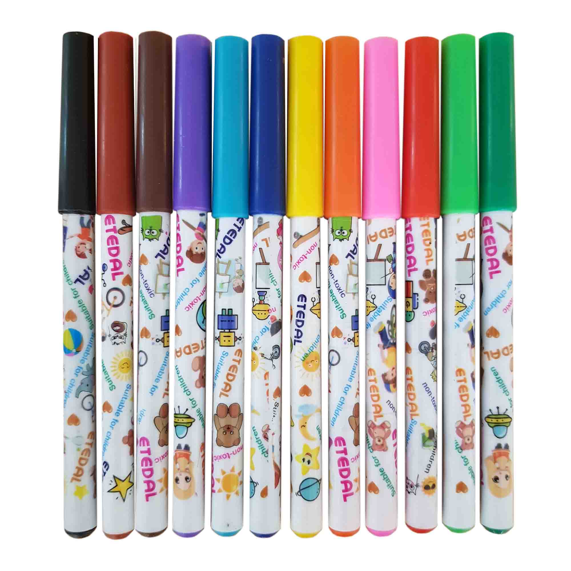 ماژیکهای ۱۲ رنگ کودکان اعتدال با جوهر پایه آب غیر سمی مخصوص نقاشی کودکان میباشد